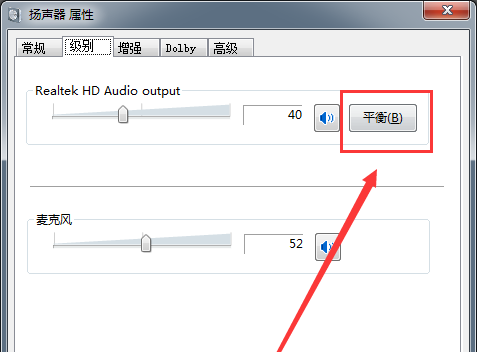 2、在弹出窗口中,切换到“级别”,点击【平衡】;