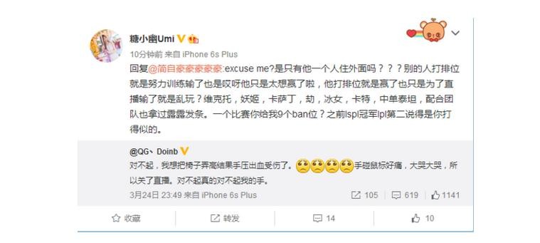 doinb的网红女友糖小幽针对夜宿问题还怒刚UZI粉丝,引来不少讨论。