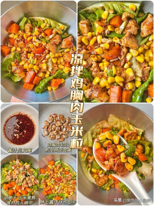 1、凉拌鸡胸肉玉米粒