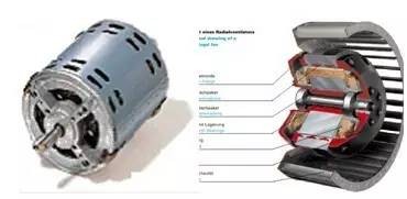 风机主要功能是各行业的送排通风,由电机和风机组成两部分组成。日常运用中,电机又被两部分结构组成,即电机有内转子、外转子两种结构(如下图):