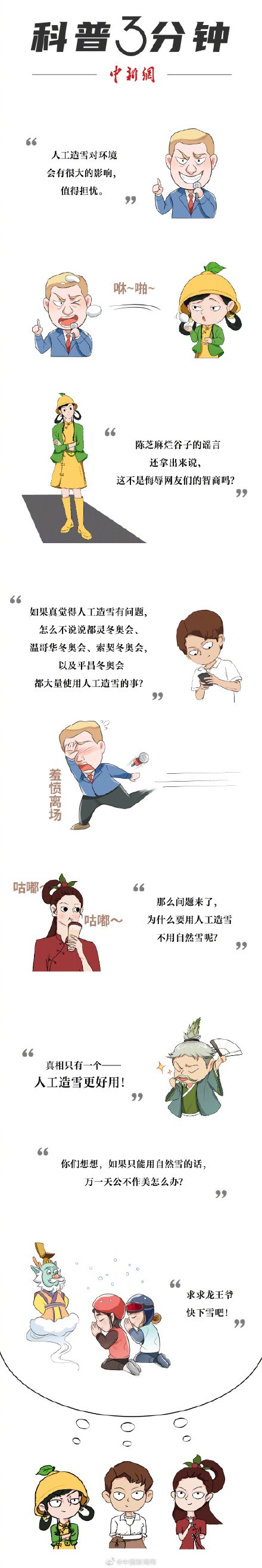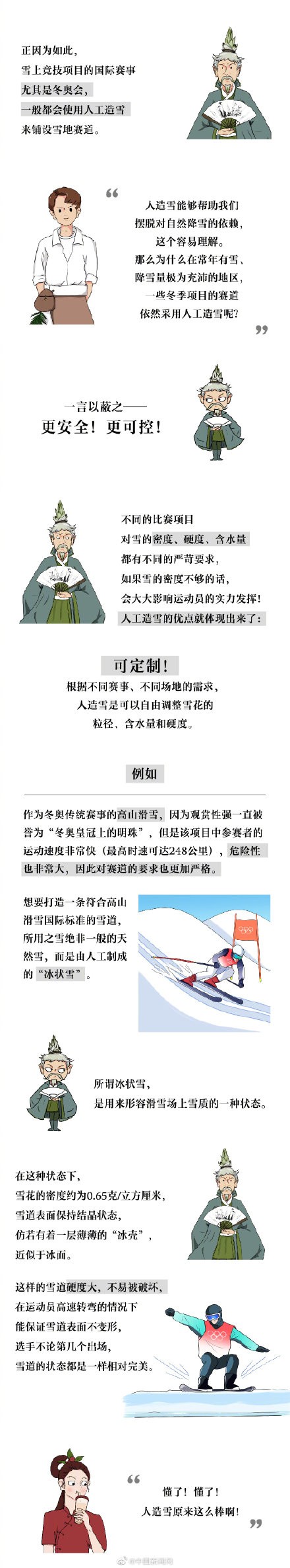 最近,有外媒抹黑造谣北京冬奥使用人工造雪“不环保”,结果被见多识广的网友给“上了一课”。原来,人工造雪不但不存在环保问题,且比天然雪更可控、更安全、更好用!都灵、索契、平昌等多届冬奥会都广泛使用人工造雪。也正是因为科研人员的努力,北京冬奥的人工造雪才如此给力,让健儿们得以更加安全地取得更好的运动成绩!看漫画,涨知识