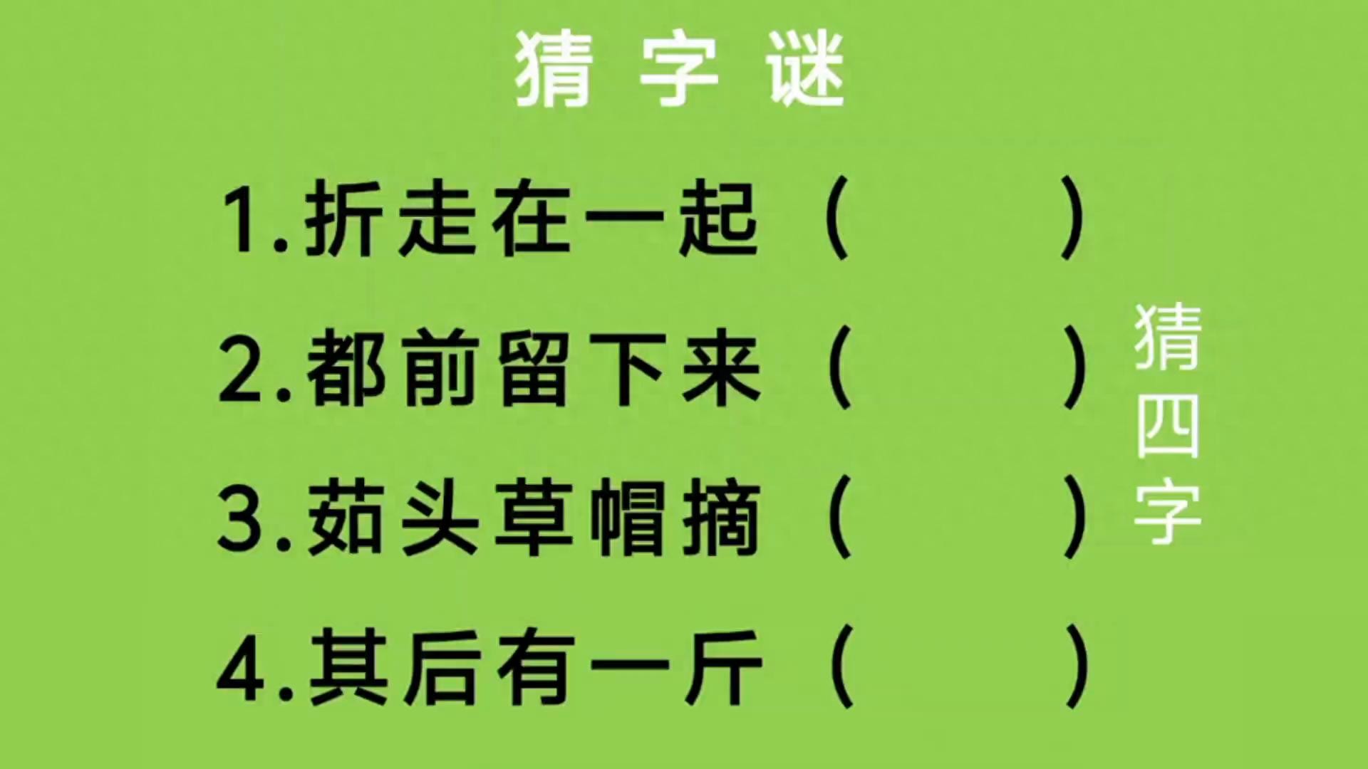 猜字谜:折走在一起、都前留下来、茹头草帽摘、其后有一斤...