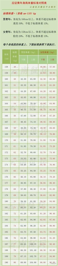 收藏|2017年应征青年身高体重标准对照表 2025-12-25 17:28 点击: 来源:蝉貂网 摘要:收藏|2017年应征青年身高体重标准对照表 身高与体重比,多少才合格? 请自行对照! 来源丨云南征兵 责编丨郭家龙 ▼ 还有这些信息值得关注 点击标题查看 收藏|2017年应征青年身高体重标准对照表身高与体重比,多少才合格?请自行对照!来源丨云南征兵责编丨郭家龙▼还有这些信息值得关注点击标题查看 相关标签: 上一篇:你能数清楚,五角星中有多少个三角形吗? 下一篇:泰信鑫利混合C近一周下跌0.03%