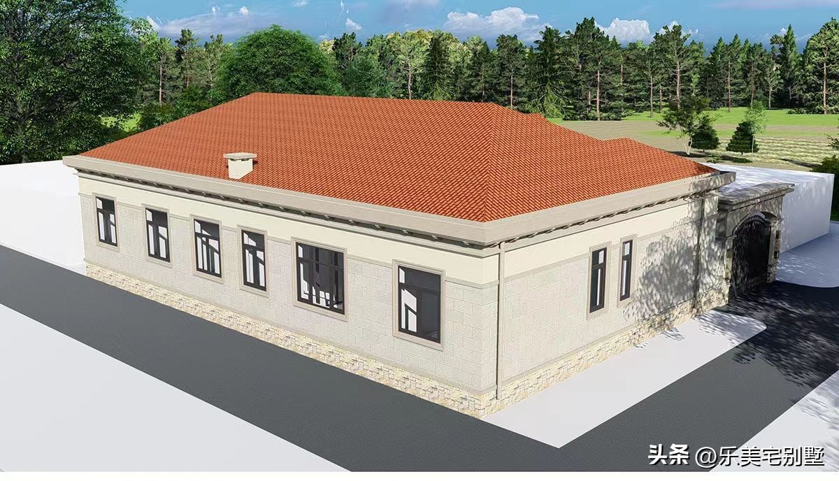 五开间一层农村别墅设计,开间20米,进深9.5米,砖混结构,占地190平,建筑总高度6.3米