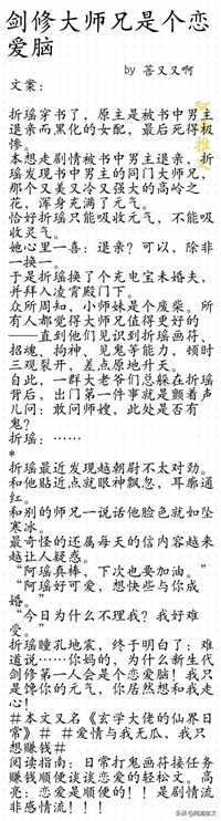 女主超级可爱,腹黑,浑身都是戏,男主也是个腹黑大师兄,看他俩的互动真的好好看哈~宗门是个有爱的大宗门,坏人也被描写的很棒,真的越看越香的文,小可爱们不要错过呀!